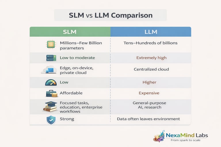 SLMs require dramatically less compute, memory, and energy—making them cost-effective for startups and enterprises alike.